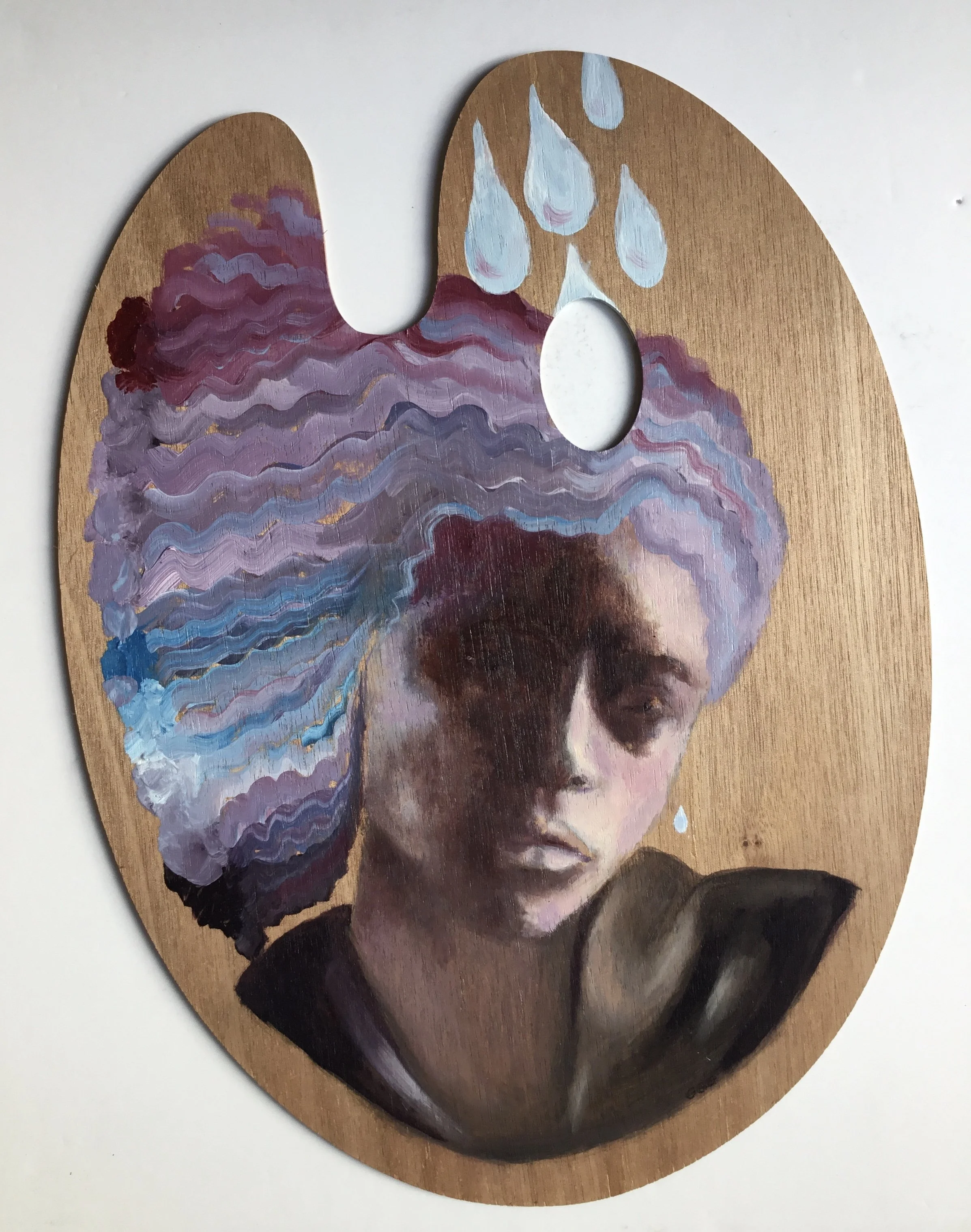 First in my series of paintings inspired by Rembrandt’s self portraits. I have included the upturned collar of Rembrandt’s leather jacket which he wore in many of his self portraits. The dark colours and dramatic lighting felt like painting in candlelight.